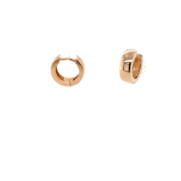14 krt roségouden strakke oorringen. Diameter 13mm, breedte 4mm.