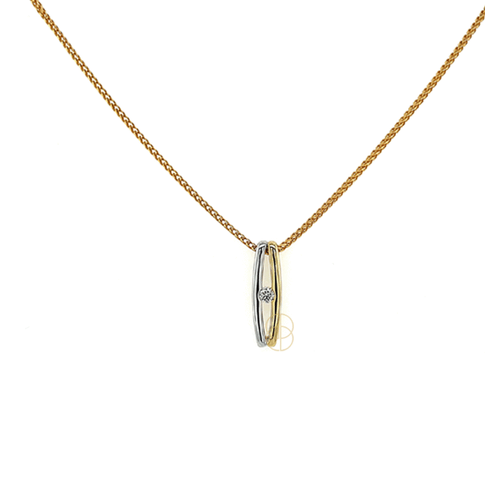 14 krt bicolor gouden hanger met 1 briljant geslepen diamant 0.07ct SI/H. Afmeting hanger: 17 x 5 mm. Prijs is exclusief collier. Bij deze hanger zijn verschillende colliers mogelijk, vraag ons naar de mogelijkheden.