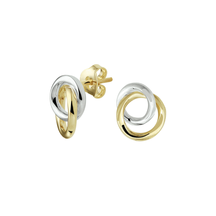 14krt bicolor gouden oorknoppen. Afmeting oorknoppen: 9 x 11 mm.
