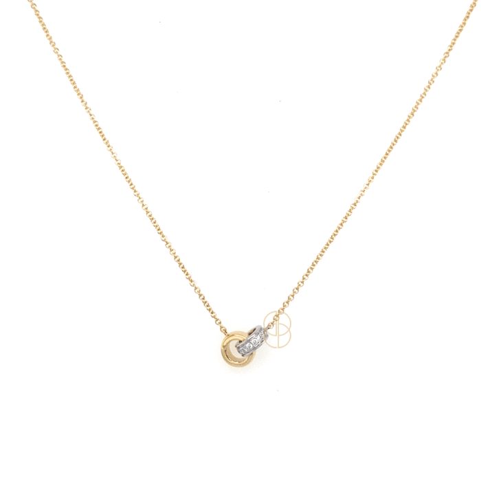 14 krt geelgouden collier met bicolor hanger met briljant geslepen diamant, totaal diamantgewicht 0.07ct Si/H.