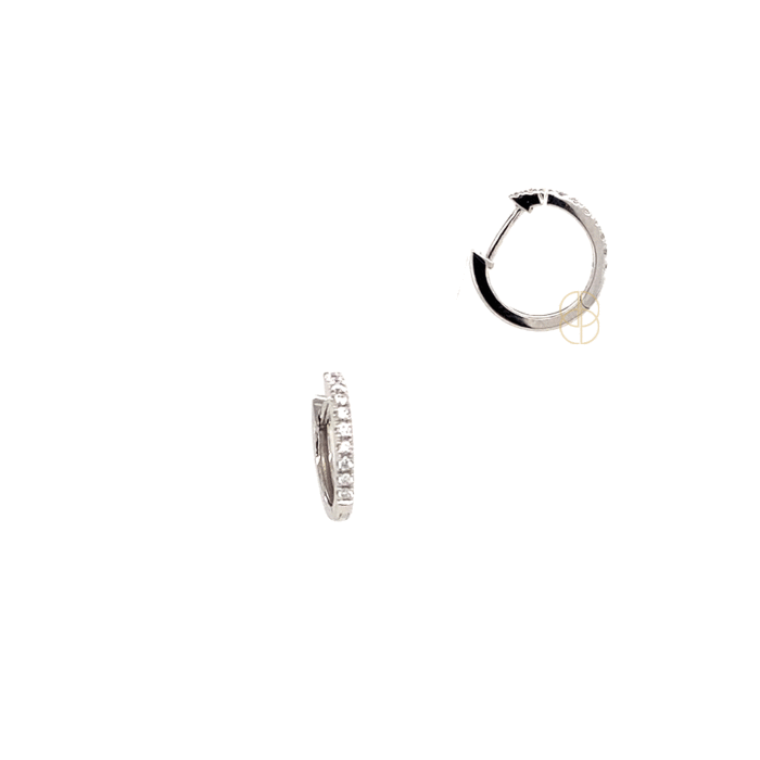 14 krt witgouden strakke oorringen met briljant geslepen diamant, totaal diamantgewicht 0.12ct.