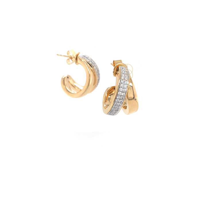 14krt geelgouden half oorringen bezet met 64 briljant geslepen diamant. Totaal diamantgewicht 0.51ct SI/G.