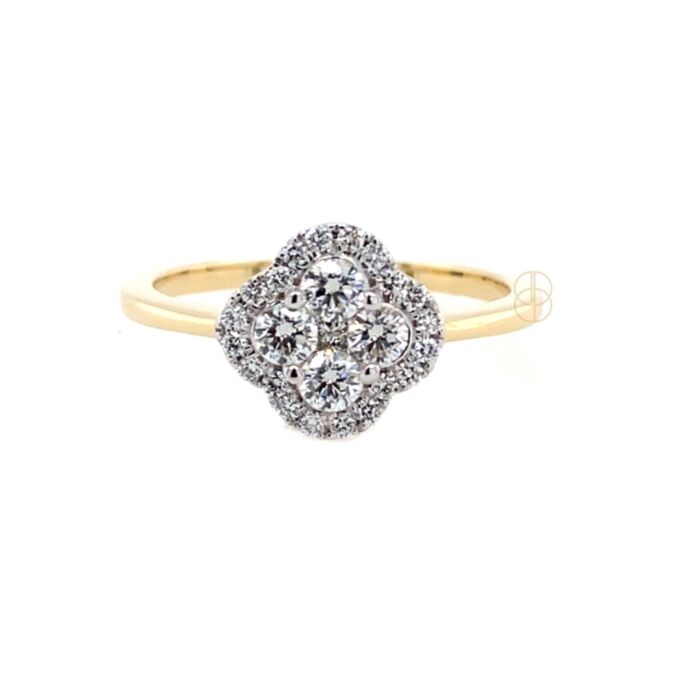 14krt geelgouden entourage ring met 24 briljant geslepen diamanten en 1 princess geslepen diamant, totaal diamantgewicht 0.41ct SI/H.