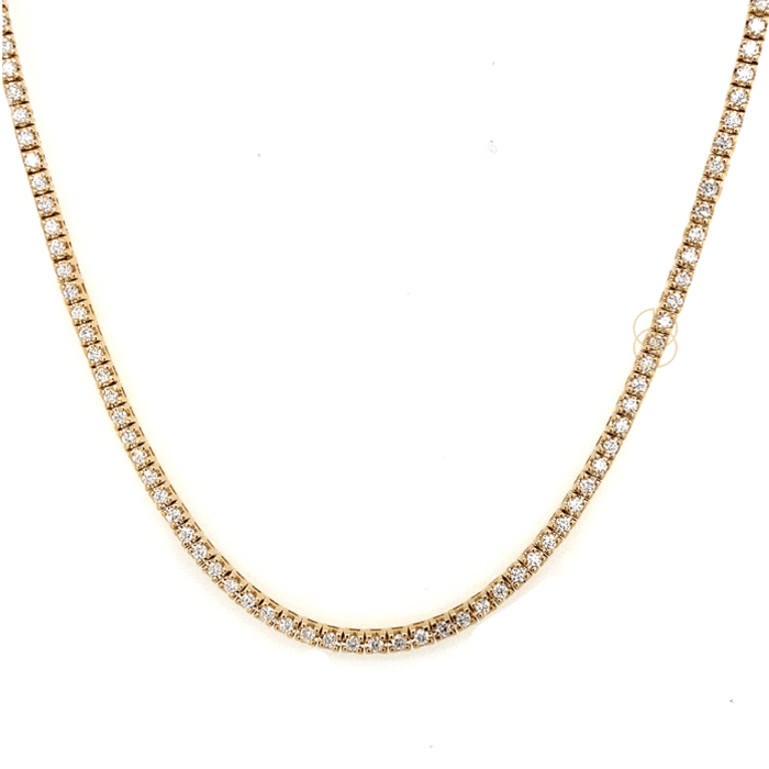 14krt geelgouden tennis collier met briljant geslepen diamanten. Totaal diamantgewicht 3.11ct Si/G.