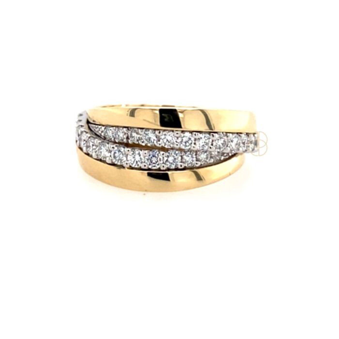 14krt bicolor gouden cross-over ring, met 26 briljant geslepen diamanten. Totaal diamantgewicht 0,76ct Si/H.