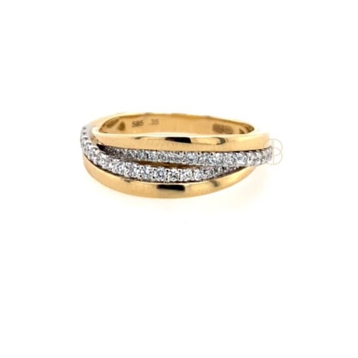14krt bicolor gouden cross-over ring, met 34 briljant geslepen diamanten. Totaal diamantgewicht 0,35ct Si/H.