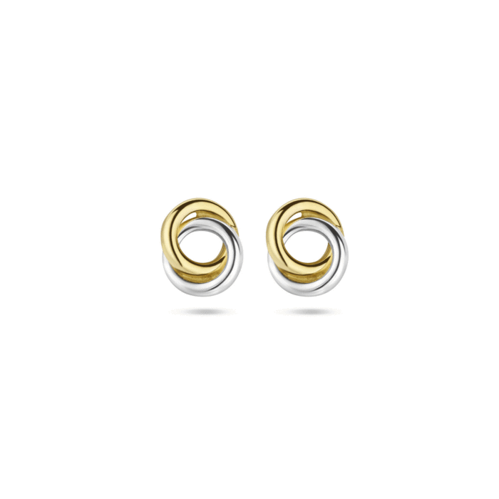 14krt bicolor gouden oorknoppen. Afmeting oorknoppen 6 x 5mm.