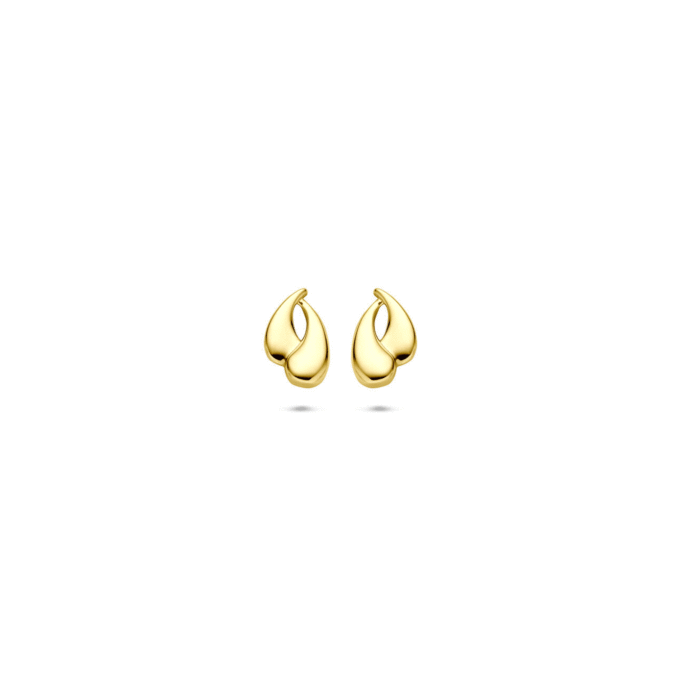14 krt geelgouden druppelvormige oorknoppen. Afmeting oorknoppen 5 x 7,5 mm.