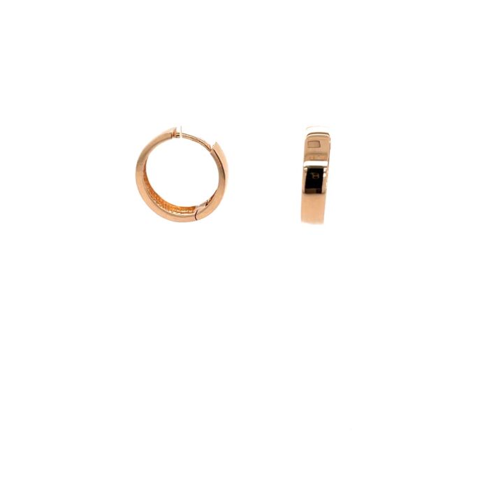 14 krt roségouden strakke oorringen. Diameter 15mm, breedte 3,5mm.