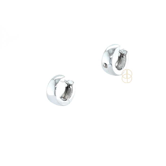 14 krt witgouden breed uitlopende oorringen. Diameter 13mm, breedste deel 5.5mm.