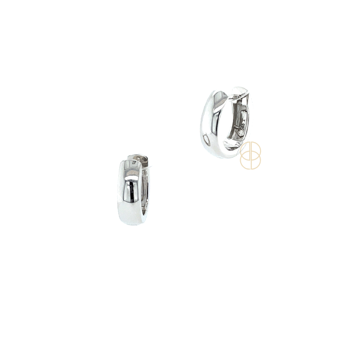 14 krt ovale witgouden oorringen. Lengte 15mm, breedte 4,5mm.