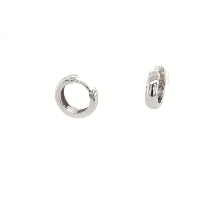 14 krt witgouden strakke oorringen. Diameter 14mm, breedte 3,5mm.