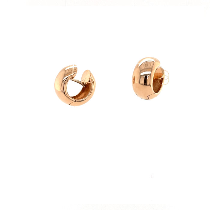 14 krt roségouden bolle oorringen. Diameter 14mm, breedte 7mm.