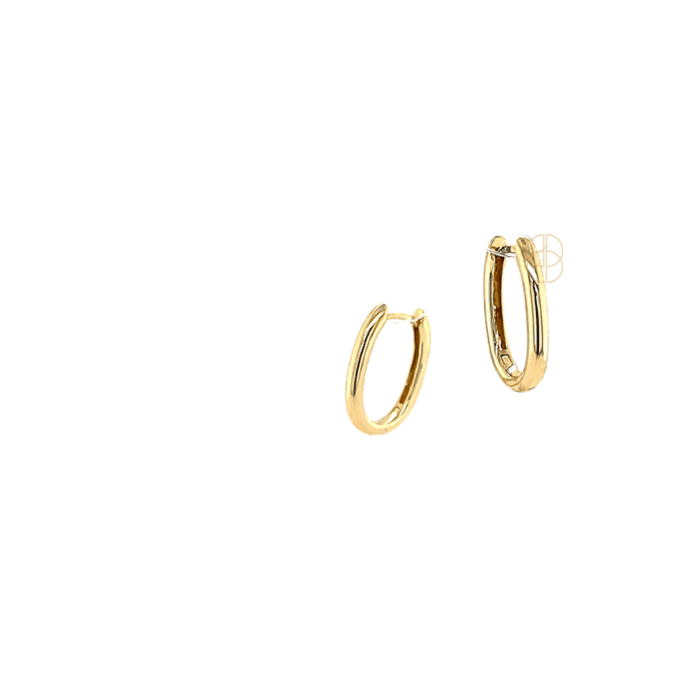 14 krt geelgouden ovale oorringen. Lengte 16mm, breedte 2mm.
