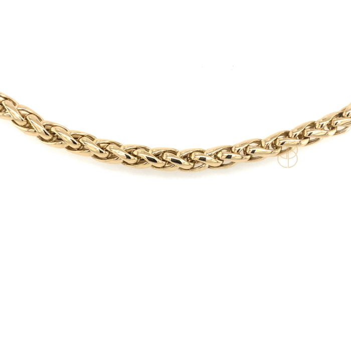 14 krt geelgouden armband met palmier schakel en veerring sluiting. Lengte 20cm, breedte 6mm.