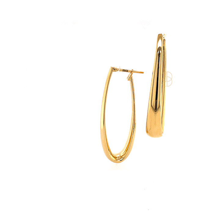 18 krt geelgouden ovale oorringen. Lengte 4,5 cm, breedte 7mm.