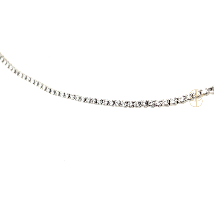 18 krt witgouden tennisarmband met 79 briljant geslepen diamanten van 0.019ct per stuk, totaal diamantgewicht 1.50ctVVS/TW. Lengte 18cm.