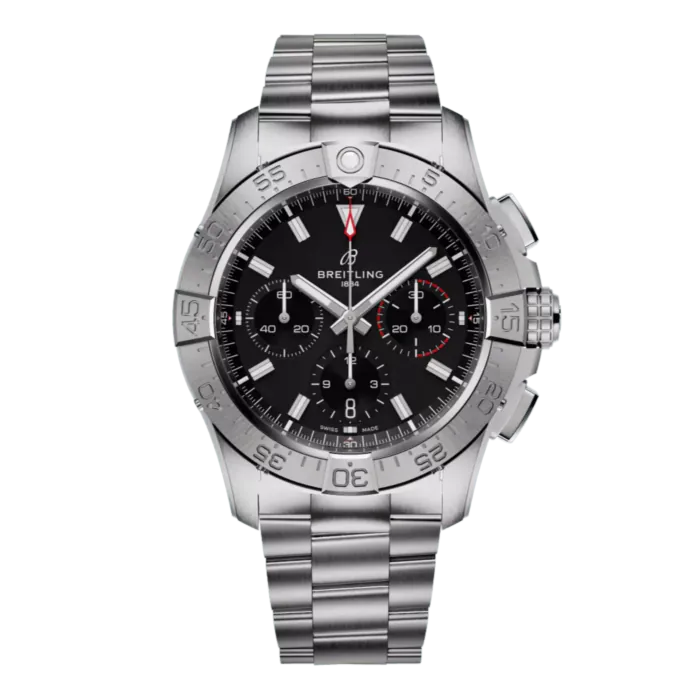 De Avenger Chronograph 42 is een aanvulling van de nieuwe Avengers. Het horloge is uitgerust met een Breitling B01 Caliber, een uurwerk met een stopwatch functie. Aan dit horloge zit een titanium of een military calfskin leren band.