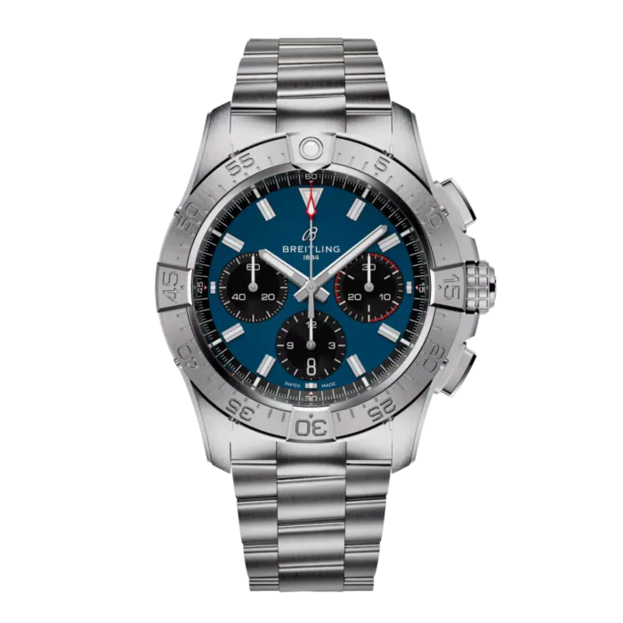 De Avenger Chronograph 42 is een aanvulling van de nieuwe Avengers. Het horloge is uitgerust met een Breitling B01 Caliber, een uurwerk met een stopwatch functie. Aan dit horloge zit een titanium of een military calfskin leren band.