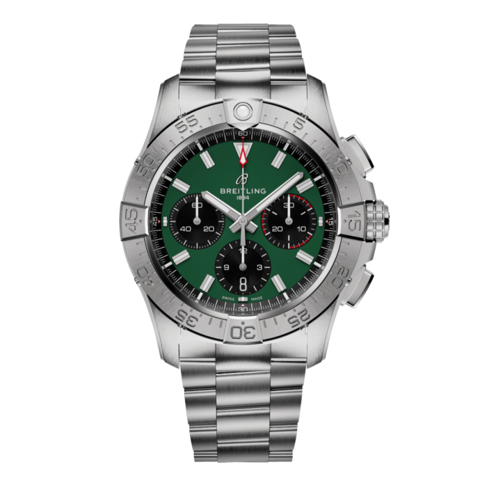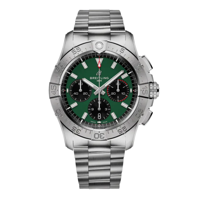 De Avenger Chronograph 42 is een aanvulling van de nieuwe Avengers. Het horloge is uitgerust met een Breitling B01 Caliber, een uurwerk met een stopwatch functie. Aan dit horloge zit een titanium of een military calfskin leren band.