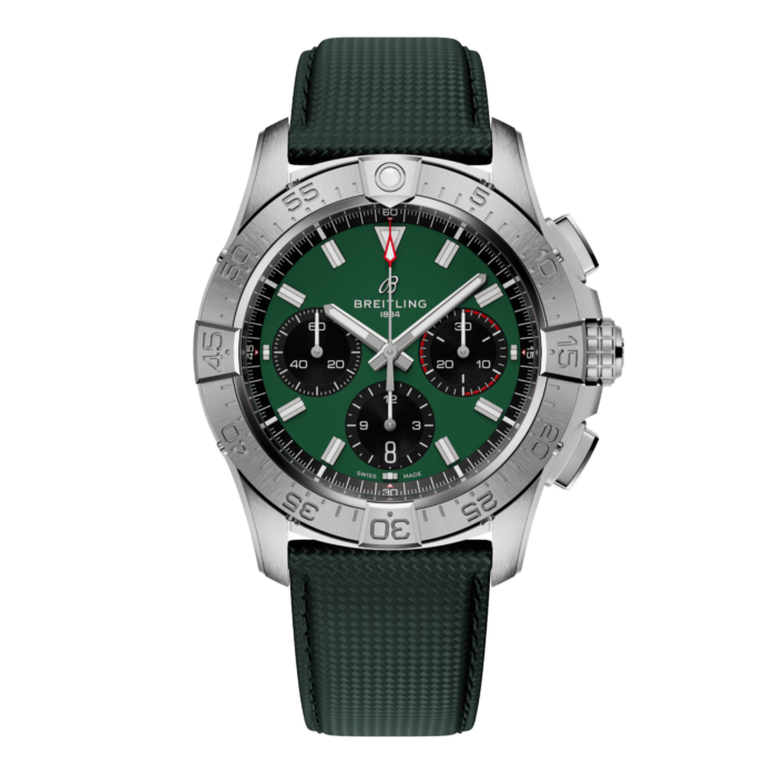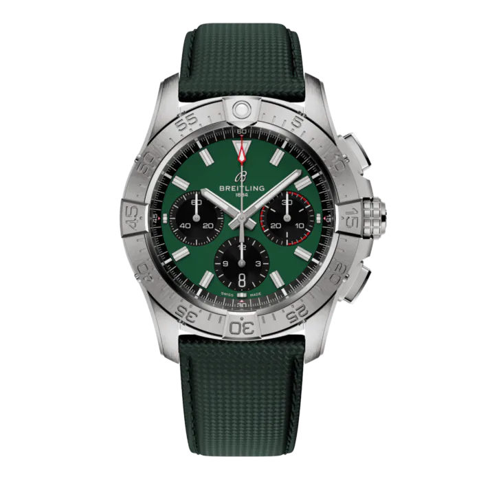 De Avenger Chronograph 42 is een aanvulling van de nieuwe Avengers. Het horloge is uitgerust met een Breitling B01 Caliber, een uurwerk met een stopwatch functie. Aan dit horloge zit een titanium of een military calfskin leren band.
