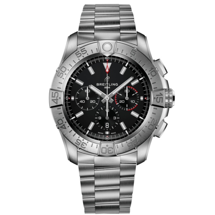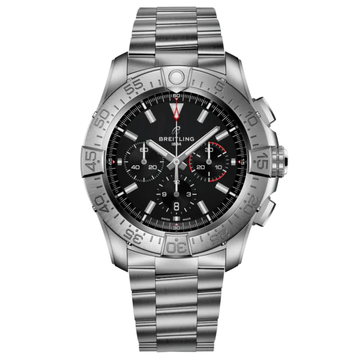 De Avenger Chronograph 46 is een aanvulling op de nieuwe Avenger. Het horloge is uitgerust met een Breitling B01 Caliber, een uurwerk met een stopwatch functie. Aan dit horloge zit een titanium of een military calfskin leren band.