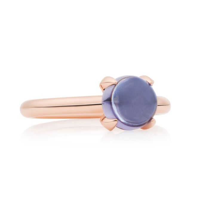 18 krt roségouden ring met cabouchon geslepen Ioliet, 8 mm.