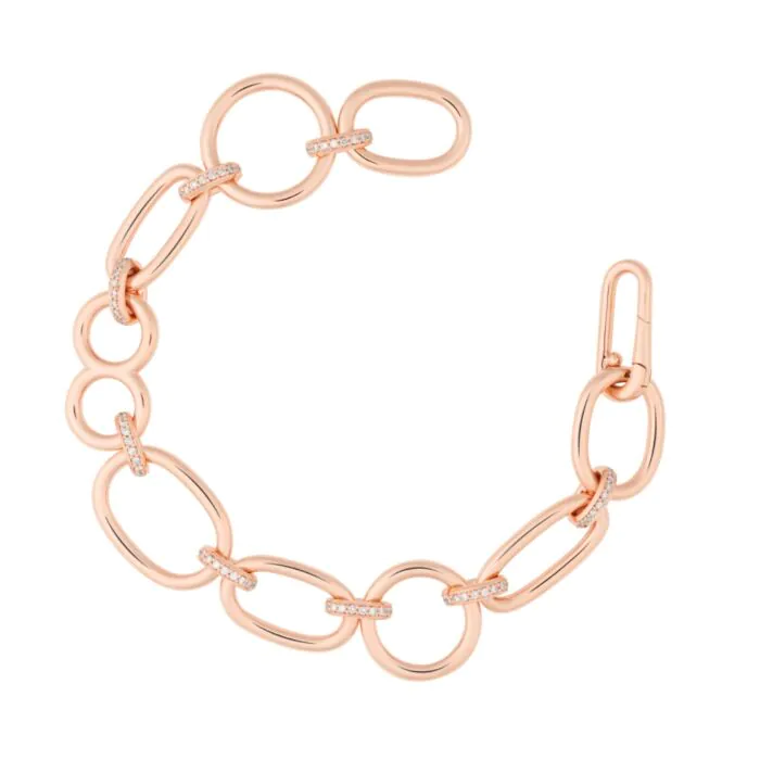 18krt roségouden massieve Bron Classico armband, bezet met witte diamant op 8 schakels. Totaal diamantgewicht 0.80ct. Lengte 19cm.