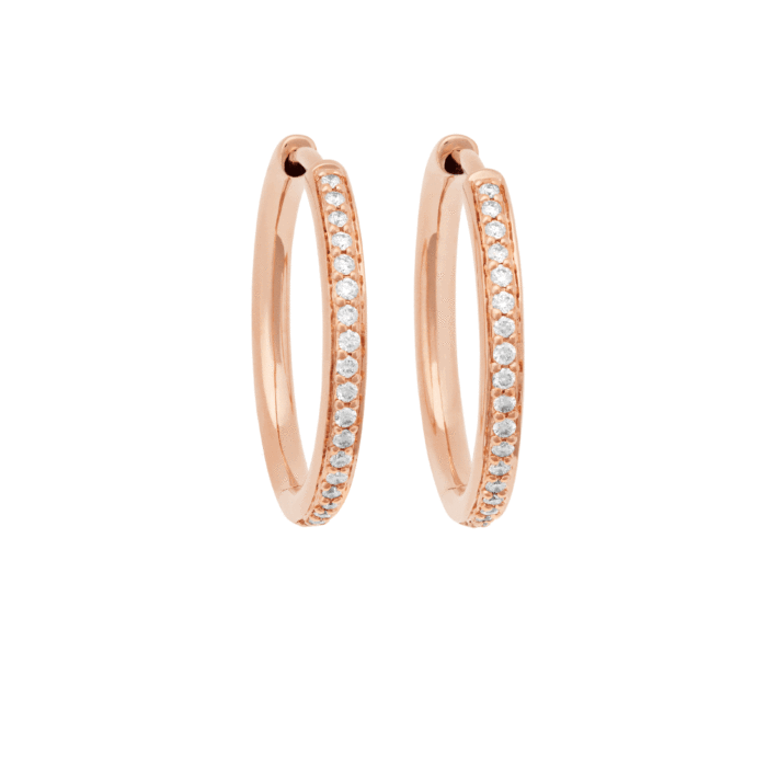 Deze 18krt roségouden oorringen zijn de basis voor talloze combinatiemogelijkheden met losse aanhangers. Bezet met witte diamantjes voor een extra luxe uitstraling. Diamantgewicht 0.22ct VVS-1/G. Diameter 20mm.