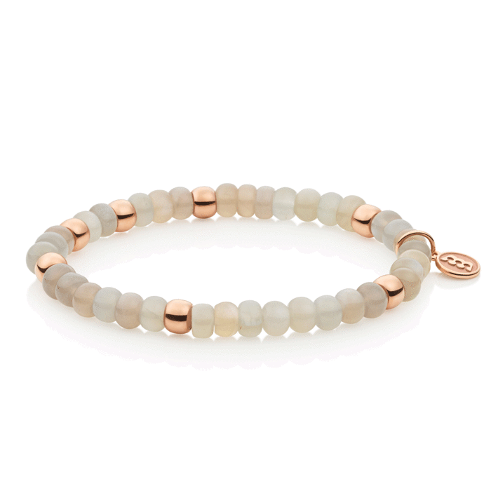 Een Bron Reflex armband met 18krt roségoud en grijze maansteen mix.
