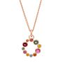 Explosie van kleur in deze 18krt roségouden Confetti hanger met bont palet van kleuren en maten saffier en een toermalijn.Collier is los verkrijgbaar.