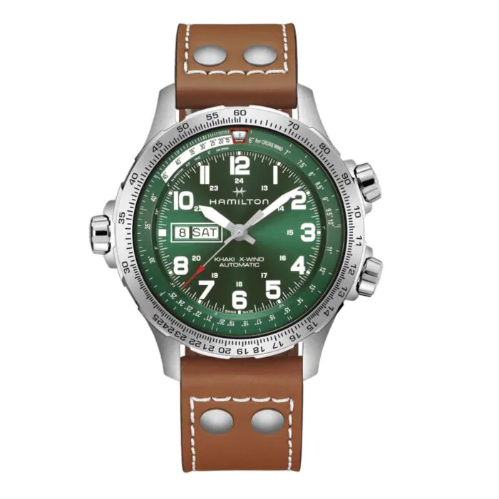 Ontworpen voor piloten en gemaakt voor avontuur: de X-Wind scheert langs in een gewaagd nieuw design. Met een opvallende groene wijzerplaat, een aan de binnenkant roterende bezel en een gangreserve van 80 uur wordt dit krachtige horloge aangedreven door ons H-30 uurwerk en is het perfect voor wie met precisie en flair door de avonturen van het leven durft te navigeren.