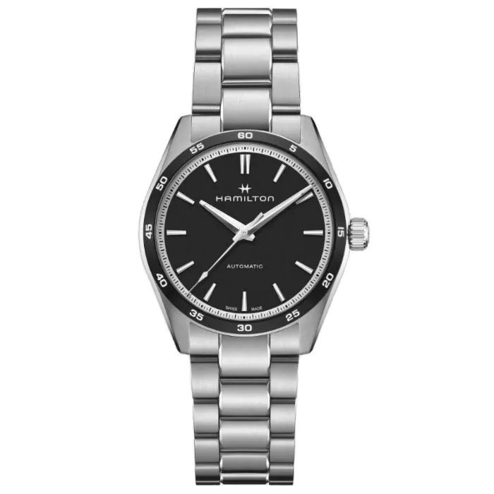 De Jazzmaster Performer lijn, die is gemaakt voor iedereen die van functioneel én stijlvol houdt, staat garant voor een krachtige, sportieve en chique uitstraling. De Jazzmaster Performer Automatic, aangestuurd door het H-10 automatische uurwerk met een gangreserve van 80 uur, is uitgerust met een roestvrijstalen kast van 34 mm, geaccentueerd door een subtiele, zwarte wijzerplaat en een verfijnde, roestvrijstalen armband.