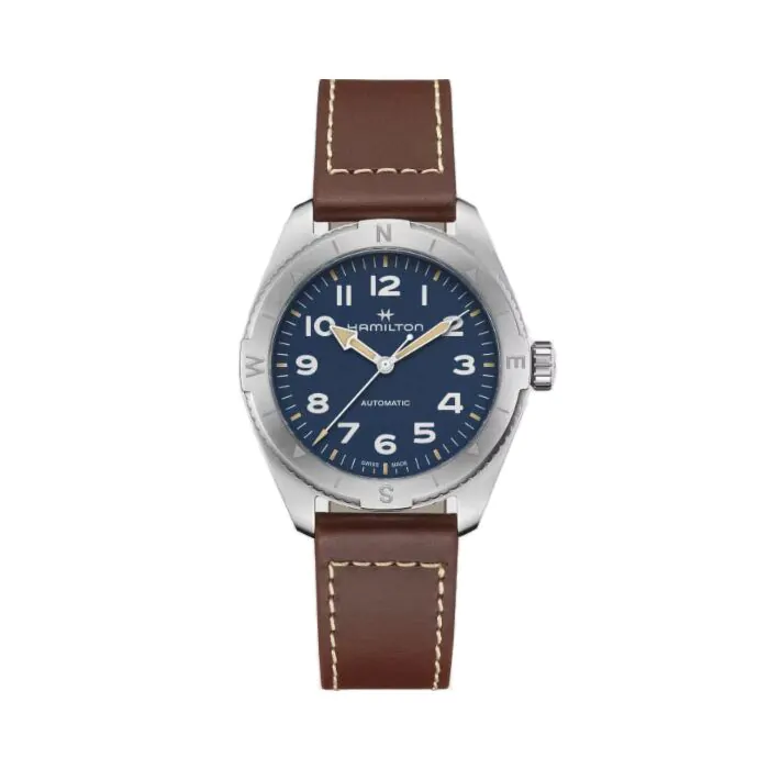 Maak u klaar voor het ruige buitenleven met de Khaki Field Expedition, een all-terrain avonturenhorloge met een kompasdesign waarmee u met behulp van de zon overal naartoe kunt navigeren. Dit horloge, met zijn behuizing in een roestvrijstalen kast van 41 mm en een bruin lederen band, is voorzien van een schroefbare kroon om het uurwerk onder alle weersomstandigheden te beschermen. De robuuste Khaki Field Expedition heeft een witte, getextureerde wijzerplaat met een Super-LumiNova®-coating voor optimale leesbaarheid.