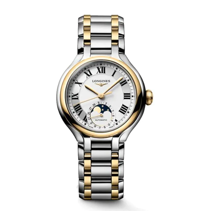 De Longines PrimaLuna Moonphase is een elegant dameshorloge dat verfijning en functionaliteit combineert. Het horloge beschikt over een maanfasecomplicatie, waardoor het niet alleen een stijlvolle accessoire is, maar ook een praktisch instrument voor het volgen van de fasen van de maan. Met een subtiele ronde kast, schitterende wijzerplaat en een luxe afwerking is de PrimaLuna Moonphase een perfecte keuze voor de vrouw die op zoek is naar zowel tijdloze schoonheid als precisie.