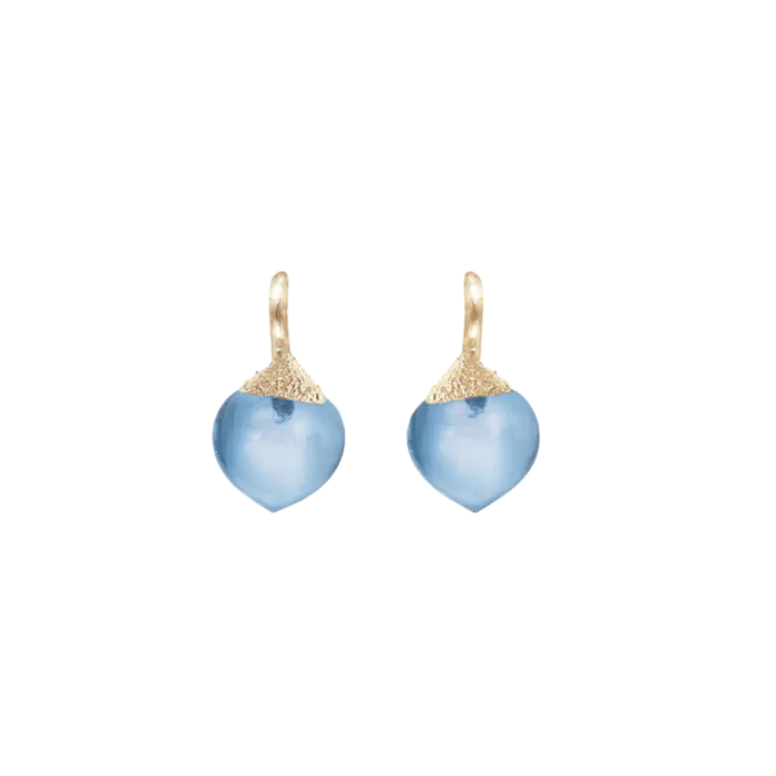 18K geelgouden OLE LYNGGAARD small Dew Drops oorhangers met Sky Blue Topaz