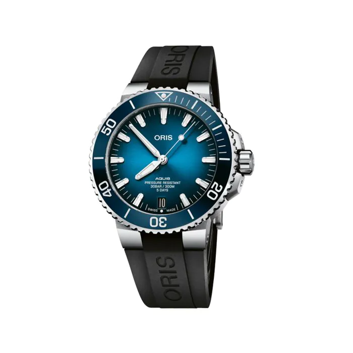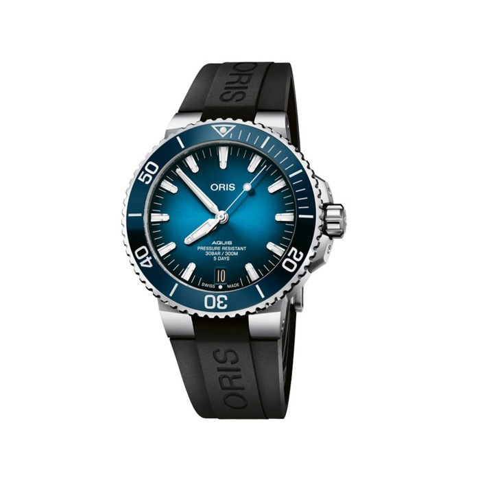 Dit is de eerste Oris Aquis met een eigen uurwerk van Oris, namelijk het automatische Calibre 400 uurwerk. Wat zo bijzonder aan dit uurwerk is is dat het uurwerk pas onderhoud nodig heeft na 10 jaar. Daarom wordt er ook 10 jaar garantie op het uurwerk gegeven. Ook heeft dit uurwerk heeft een gangreserve van 120 uur.