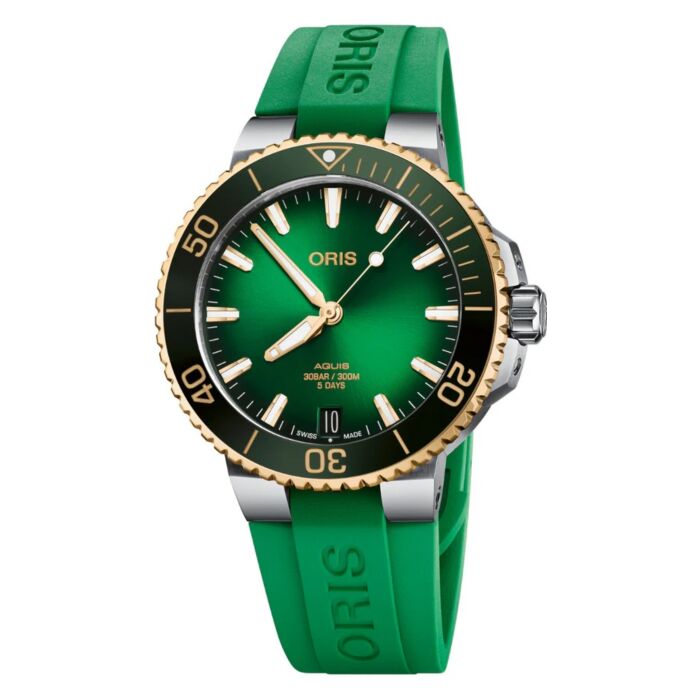 Dit is de eerste Oris Aquis met een eigen uurwerk van Oris, namelijk het automatische Calibre 400 uurwerk. Wat zo bijzonder aan dit uurwerk is is dat het uurwerk pas onderhoud nodig heeft na 10 jaar. Daarom wordt er ook 10 jaar garantie op het uurwerk gegeven. Ook heeft dit uurwerk heeft een gangreserve van 120 uur.