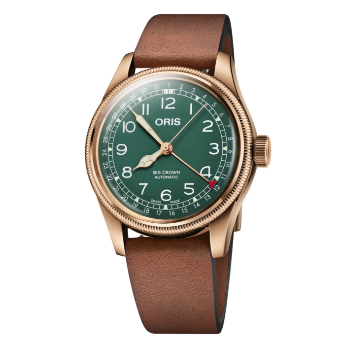 De Big Crown Pointer Date, voor het eerst geïntroduceerd in 1938 en bedoeld voor piloten met handschoenen, is ons kenmerkende ontwerp. Deze fraaie 80e jubileumeditie in brons viert de bijzondere rol die het horloge in de geschiedenis van Oris heeft gespeeld.