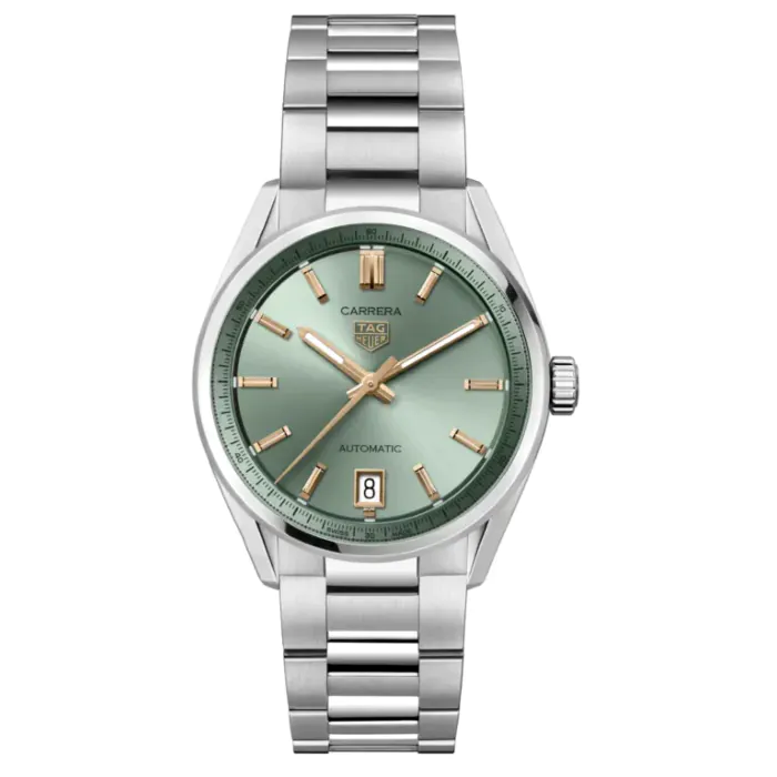 Maak kennis met de TAG Heuer Carrera-datum in 36 mm, een prachtig uurwerk met een groene wijzerplaat en een robuuste stalen kast. Ontworpen voor elegantie en precisie, biedt het een opvallende mix van stijl en functionaliteit.