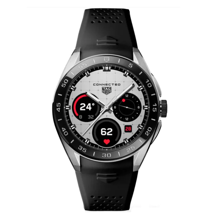 De TAG Heuer Connected Caliber E5 combineert naadloos het vakmanschap van TAG Heuer op het gebied van horlogemaken en de avant-gardistische geest, en past dit toe op zowel digitale als mechanische creaties. Dit connected horloge van 45 mm belichaamt een harmonieuze combinatie van robuust ontwerp en intelligente functionaliteit, waardoor een smartwatch ontstaat die even veelzijdig als modern is.