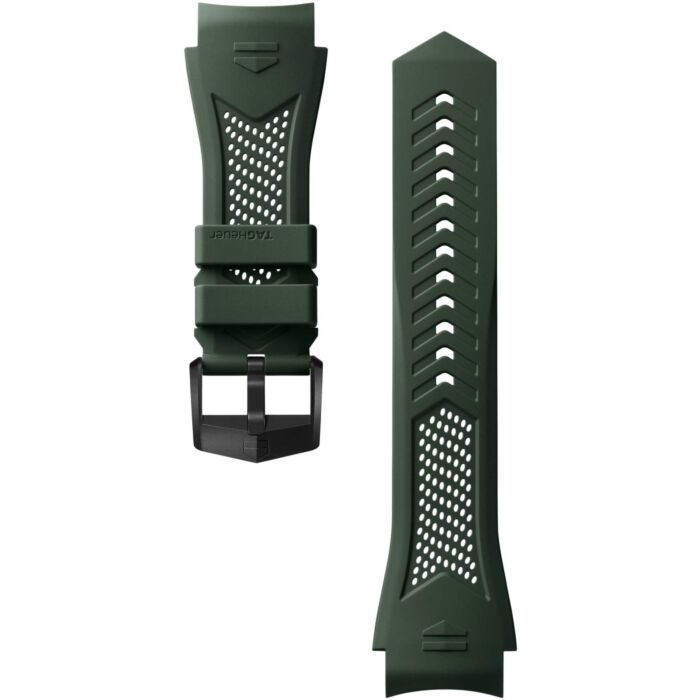 Verrijk uw TAG Heuer Connected 45mm met deze sportieve kaki groene rubberen sportband, waarvan de diepe, aardse tint een vleugje natuurlijke elegantie biedt. Vastgezet met een zwarte DLC stalen gespsluiting, verfraaid met het TAG Heuer schild, biedt deze een perfecte combinatie van stijl en geavanceerde technologie. Niet compatibel met eerdere versies van Connected horloges.