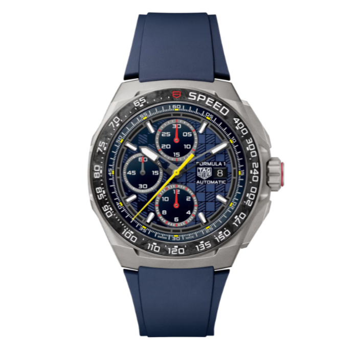 TAG Heuer brings its racing DNA to the fore with the TAG Heuer Formula 1 Automatic Chronograph x Oracle Red Bull Racing. This striking timepiece pays homage to the Oracle Red Bull Racing team, combining its iconic racing colors with cutting-edge materials for the ultimate motorsport-inspired watch.