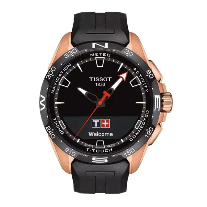 Deze Tissot T-Touch Connect Solar heeft een 47mm titanium rosé PVD kast met een saffier glas en een keramische lunette. Het horloge wordt volledig door Tissot gemaakt in Zwitserland.